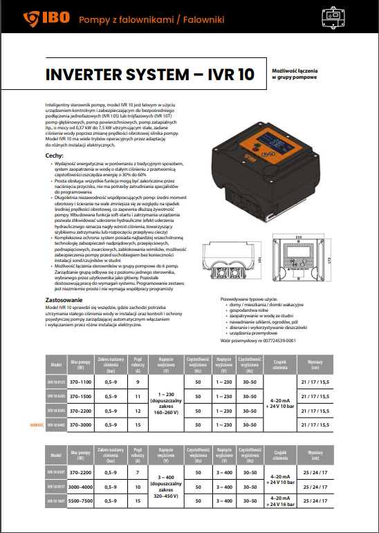 Inteligentny sterownik pompy, model IVR-10 jest łatwym w użyciu urządzeniem kontrolnym i zabezpieczającym do bezpośredniego podłączenia pomp