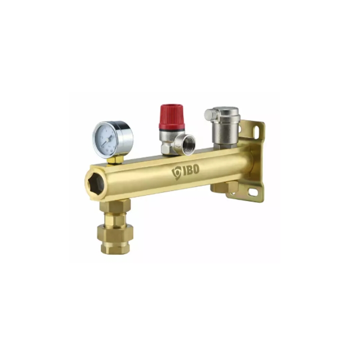 Zestaw wyposażony jest w manometr umożliwiający bieżący odczyt ciśnienia, automatyczny odpowietrznik usuwający powietrze z instalacji, zawór bezpieczeństwa oraz zawór serwisowy ułatwiający obsługę i konserwację.