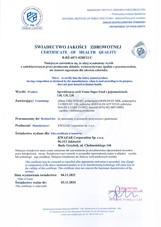 Strona główna » Opryskiwacze do żywności » Venus Super food 1L Kwazar Cleaning Pro+ spożywczy Atest